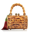 Handwoven rattan and bamboo bag. Bamboo handle and removable leather shoulder strap. Comes with a silk pendant. Can be used as a shoulder bag, crossbody or handbag.