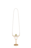 Bag in the shape of a cocktail glass, featuring a metal frame and woven wicker. comes with a leather shoulder strap.