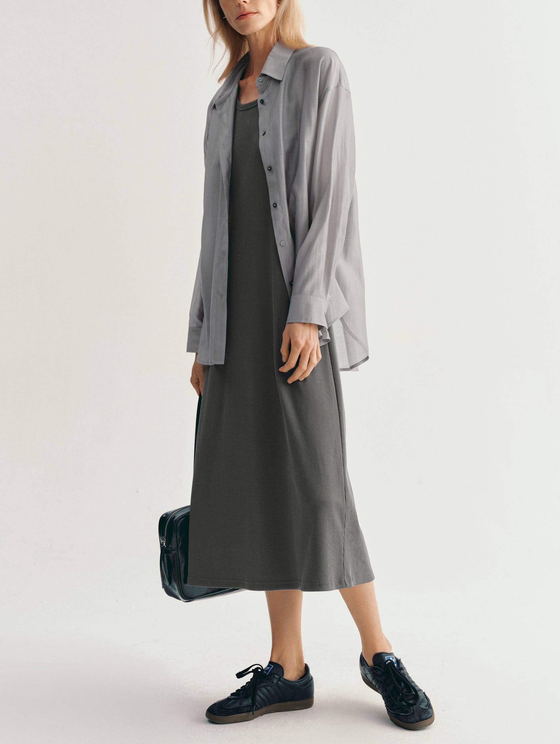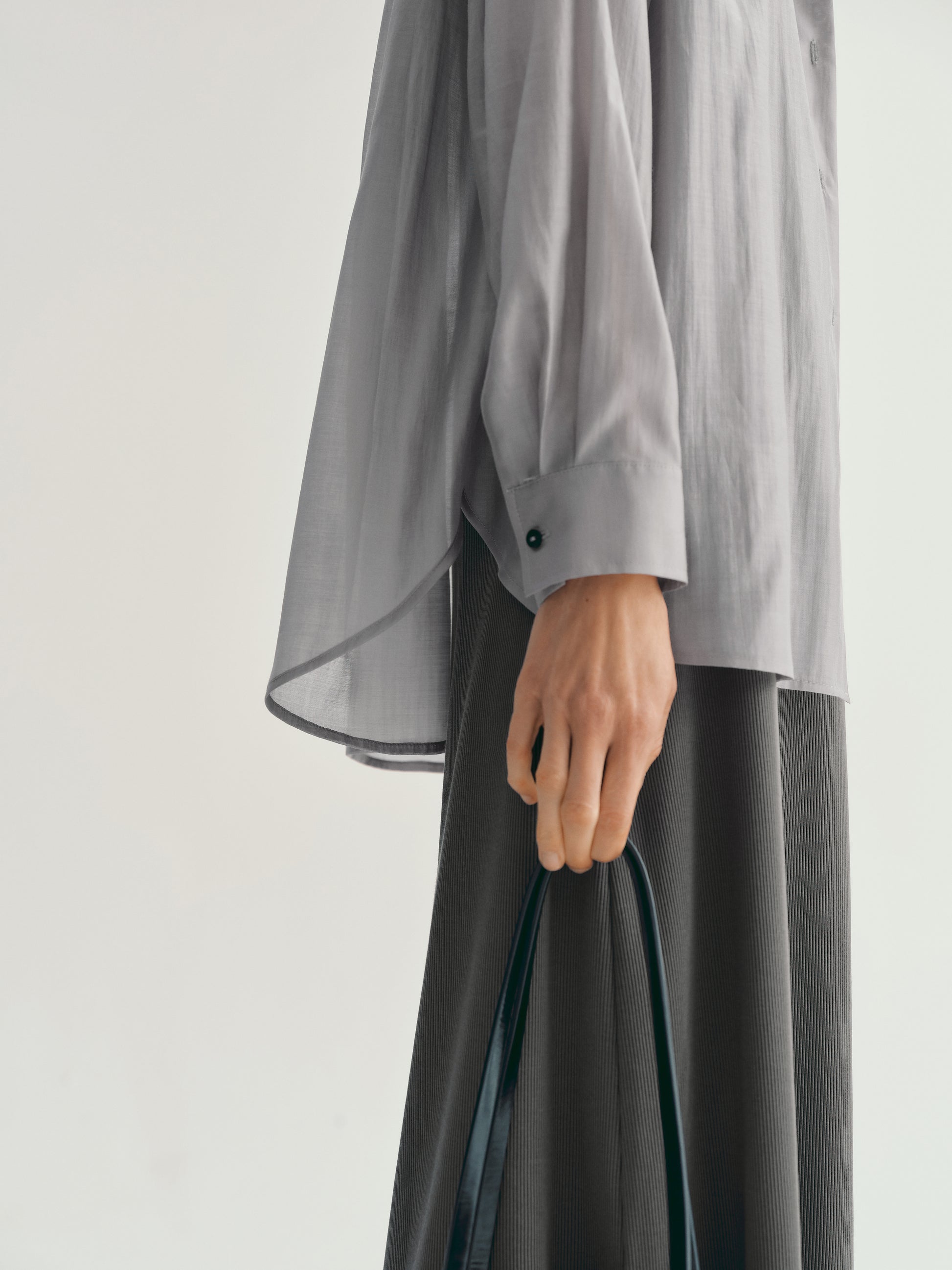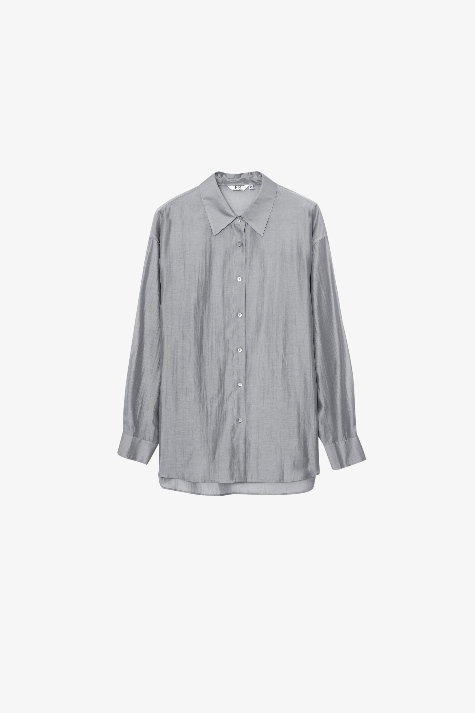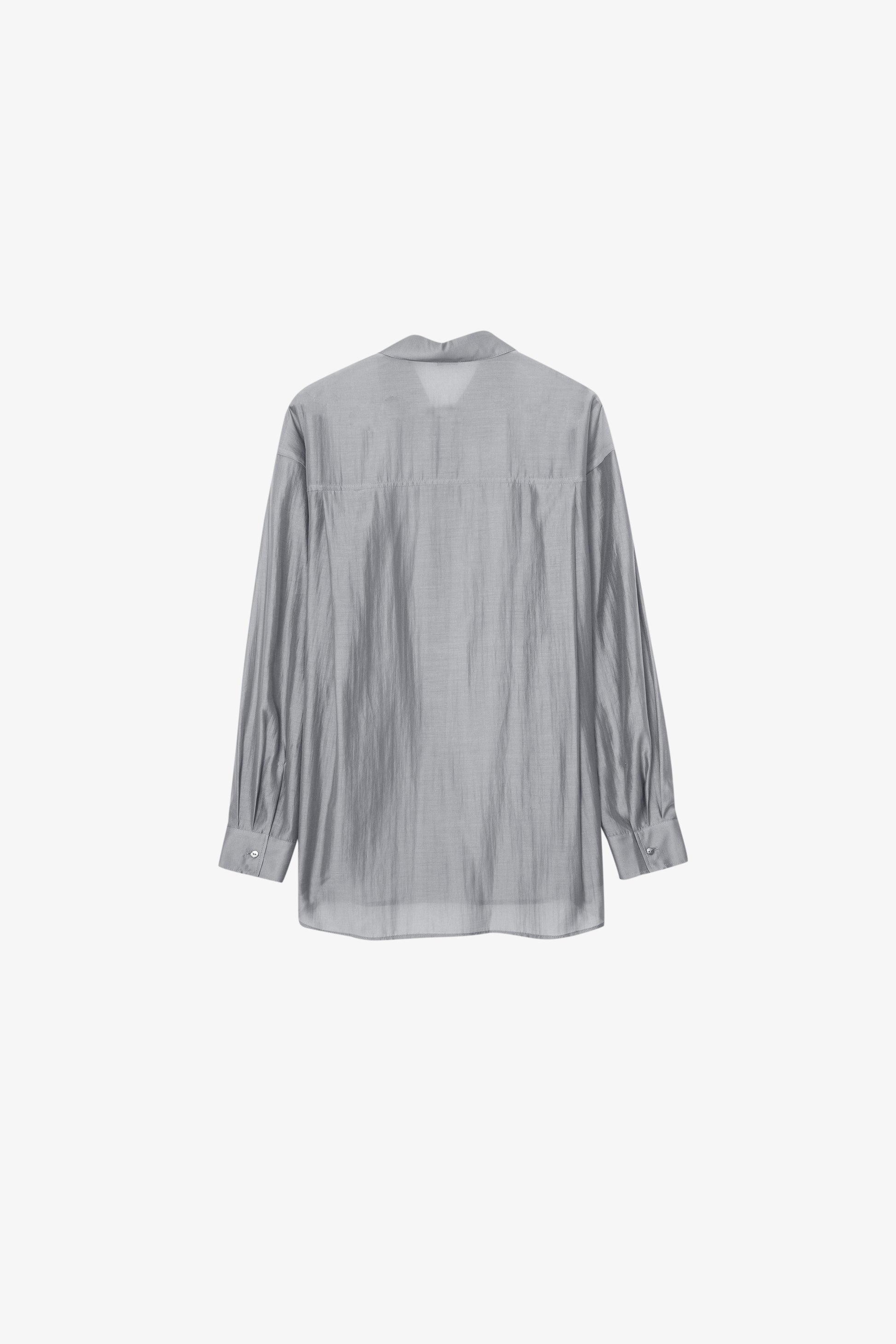 Gray silk shirt, elegant and sophisticated, with a soft and lightweight feel that exudes luxury. its classic design features a structured collar and from buttons, making it perfect for a refined for a refined and versatile look. ideal to pair with dress pants for a formal style or with Jeans for a more casual and modern touch.