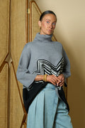 Oversized turtleneck sweater with color-block