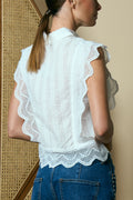 Featuring intrincate lace detailing ans flattering silhouette, it pairs beautifully with jeans, skirt or tailoring pants, making it a versatile wardrobe essentials.