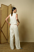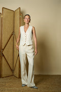 Soft beige linen pants designed for comfort and style.