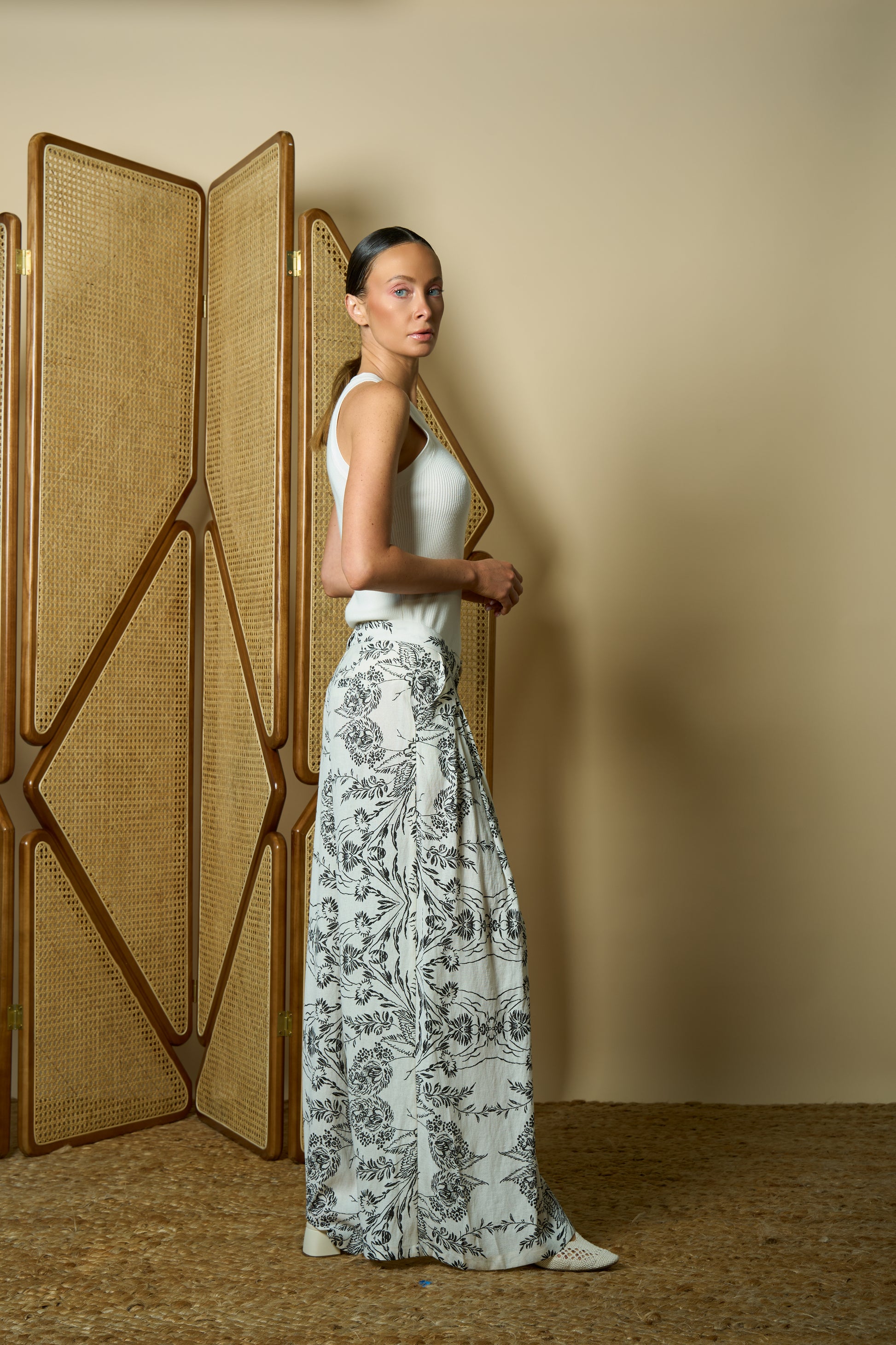 Vintage print meets off-white tones in these statement pants-subtle, unique, unforgettable.