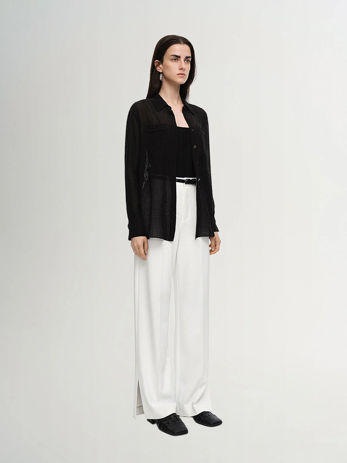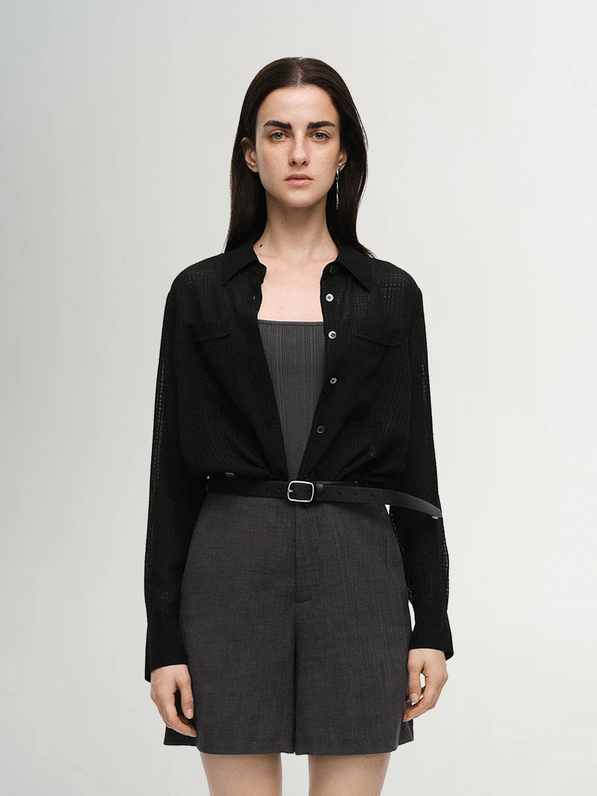 This black mulberry silk shirt with fine stripes is an elegant and timeless piece, perfect for adding a touch of sophistication to your outfits.