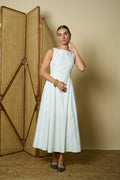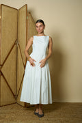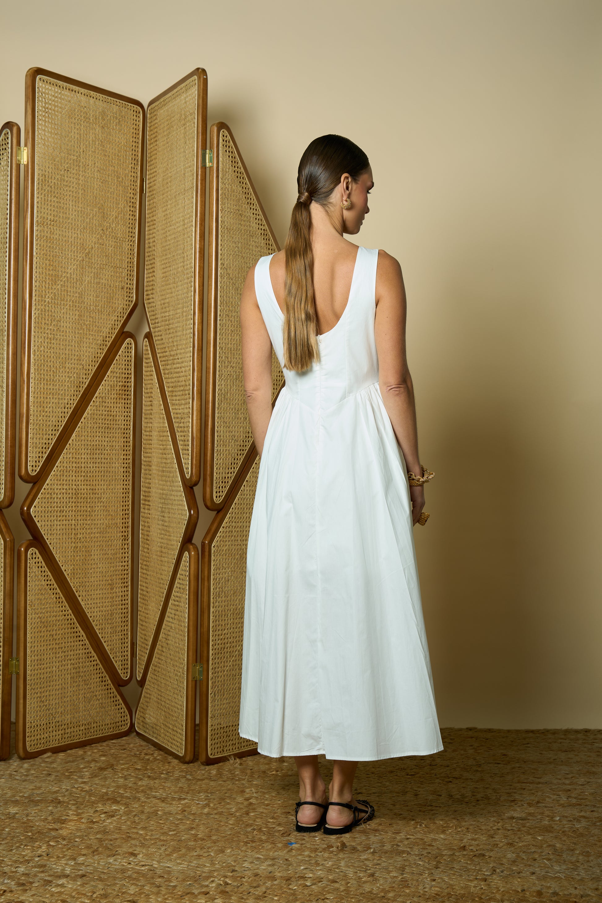 Sleeveless white dress with a princess cut, timeless feminine and effortlessly elegant.